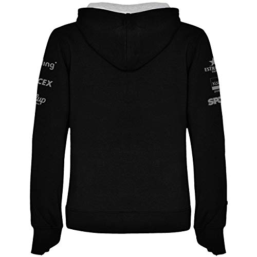 CHARACTERISTICS: Gepaste sweatshirt voor vrouwen, vrouwelijke snit. Lange mouwen, met een tweekleurige dubbele stoffen kap, contrasterend koord, halsopening, kangoeroezak en duimgatopening. Contrasterende kleurdetails. Maximaal comfort voor de sportbeoefening, met speciale peddelbedrukking. Ideale uitrusting van hoge kwaliteit voor paddle-tennisfans. Vervaardigd in geribd breiwerk met elasthaan 1×1 in manchetten en taille. Hoogwaardig materiaal 280 g/m².