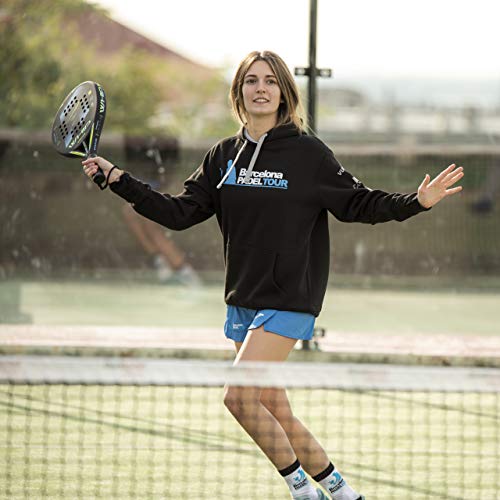 Specification: Barcelona Padel Tour | Dames sweatshirt met tweekleurige capuchon, kangoeroezak en speciale paddle-print met sponsor…