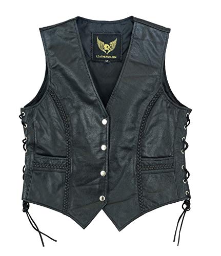 Specification: Dames lederen gevlochten biker stijl gilet voor casual en mode mouwloos jas / vest (L) (12)