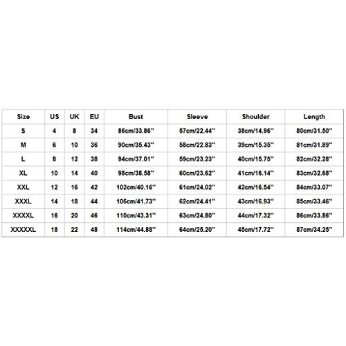 Maat: 4XL US: 16 UK: 20 EU: 46 Borstomtrek: 110 cm. Mouwlengte: 63 cm. Schouderbreedte: 44 cm. Lengte: 86 cm.