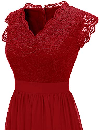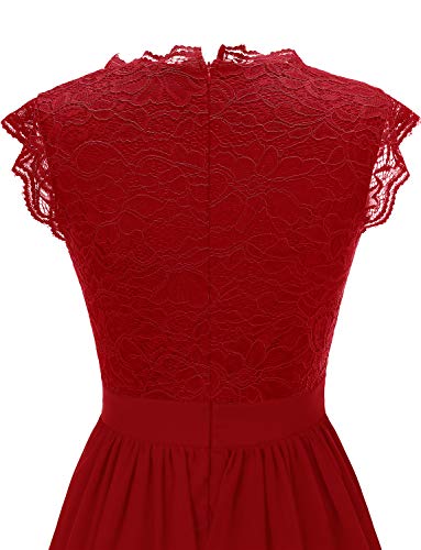 Aupuls baljurken met kant, elegant V-hals, cocktailjurk, korte mouwen, chiffon, bloemenpatroon