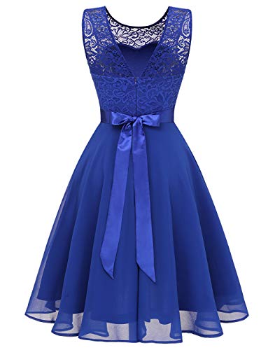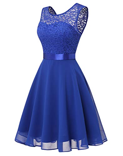 Specification: BeryLove dames kanten jurk bruidsmeisjes elegante party knielange cocktailjurk chiffon mouwloos