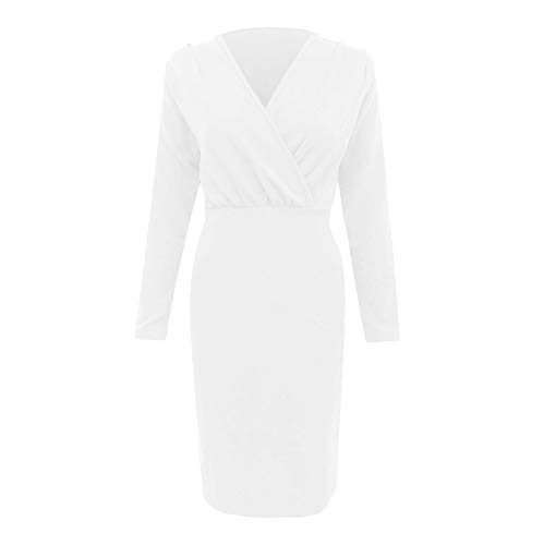 Specification: BIBOKAOKE Casual damesjurk effen V-hals jurk Elgant sexy jurk slanke midi-jurk stretch bodycon feestjurk voor kantoor…