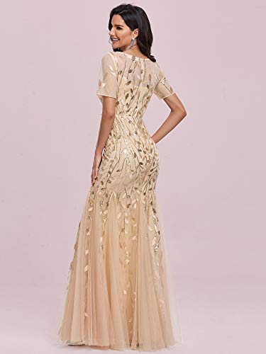 Specification: Ever Pretty Dames Korte Mouw Geborduurde Tulle met Pailletten Feestjurken Zeemeermin Avondjurken Ronde Hals Galajurken…