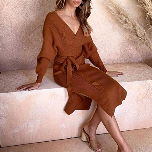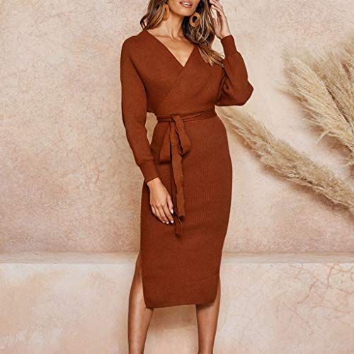 Specification: Sunday gebreide damesjurk met lange mouwen, avondjurk, elegante partyjurk, knielang, herfstjurk, baljurk, slim fit, sexy…