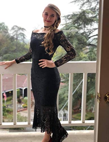 🌸 Featue: met opvallende aantrekkingskracht van boven naar beneden, heeft deze elegante avondjurk pure kanten mouwen en een onregelmatige zoom van Fishtail. rits aan de achterkant