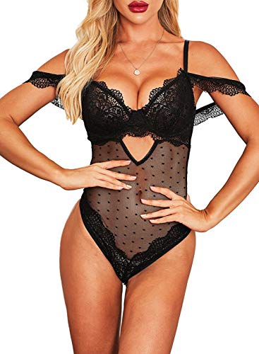 Specification: CORAFRITZ Vrouwen Zwart Kant Lingerie Strappy Bodysuit Drop Schouder Teddy Bodycon Babydoll Mesh Sexy Ondergoed