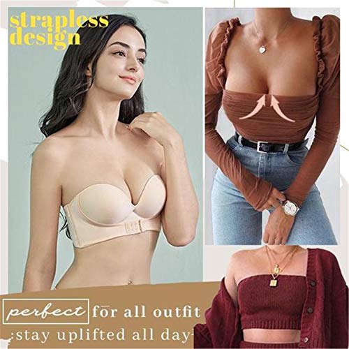 Specification: Women Strapless Front Buckle Lift Bra,Girl Push Up Adjustable Breathable Bra Invisible Wirefree Bra