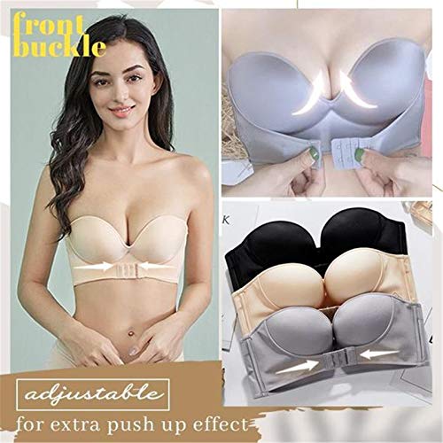 Women Strapless Front Buckle Lift Bra,Girl Push Up Adjustable Breathable Bra Invisible Wirefree Bra
