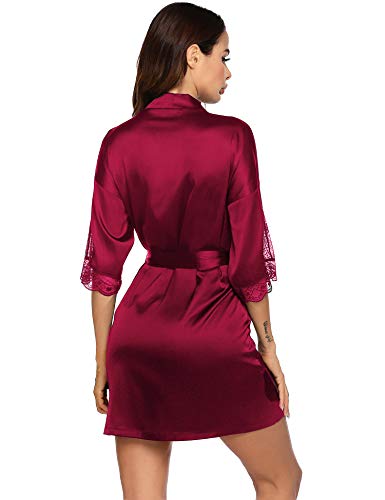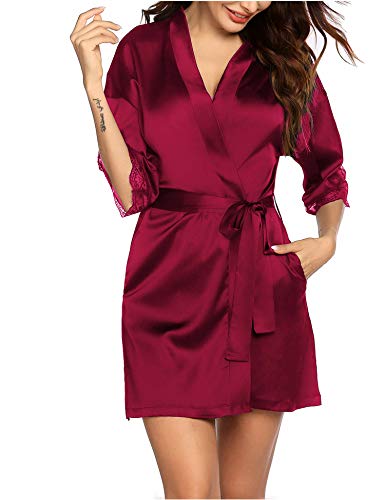 Specification: Balancora Kimono ochtendjas voor dames, kort, kant, badjas, zijde, ochtendrok, bruid, satijn, nachtjas, nachtkleding met…