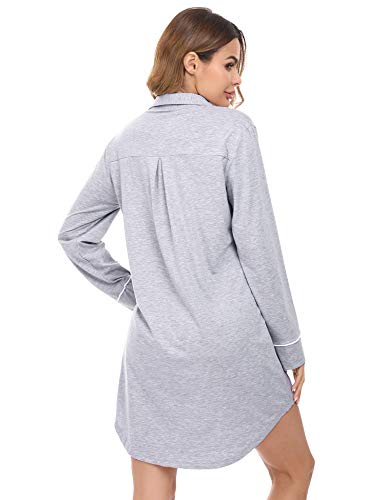 Doaraha dames nachthemd met lange mouwen katoenen knoop voorkant, v-hals vriendje slaapshirt nachtjurk kort, slaapshirt…