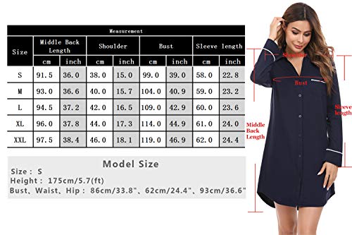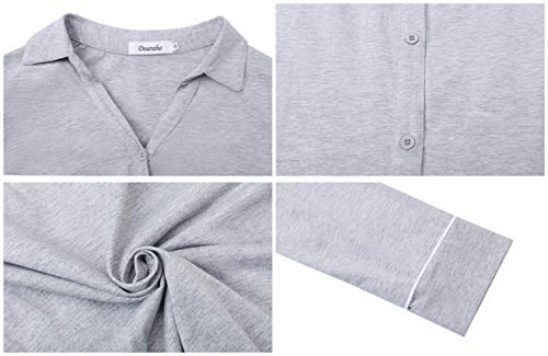 Specification: Doaraha dames nachthemd met lange mouwen katoenen knoop voorkant, v-hals vriendje slaapshirt nachtjurk kort, slaapshirt…