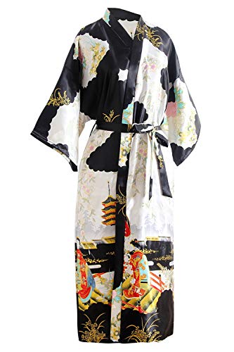 ❤ Borstbreedte: 126 cm, geschikt voor S tot 2XL ❤ImonKimono Geisha Blossoms and Glitter Font voor breed gebruik: geschikt voor verschillende gelegenheden en seizoenen, waaronder spa hotel, housecoat, Valentijnsdag, bruidsmeisje, party of bruidsfeest. Om te ontspannen, te luieren of te baden.