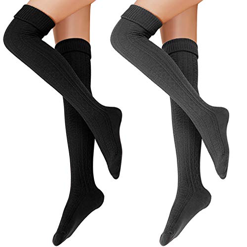 Tacobear 2 paar overknee-kousen gebreide kniekousen dames winter warm beenwarmers beenwarmers kousen katoenen kousen…