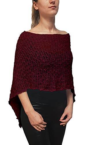 Veelzijdige popcornstijl gehaakte gebreide poncho die op verschillende manieren kan worden gedragen voor elke ocassie. Perfecte lichte zomerwikkel, of als aanvulling op een top of jurk verkrijgbaar in een breed scala aan gedurfde en mooie kleuren. Geweldig accessoire om je outfit aan te kleden met behoud van een casual look. De lichte stof maakt het gemakkelijk om in je handtas te glijden om naar buiten te brengen als een wrap wanneer nodig. Maakt geweldige armhoes. De kant is rekbaar en hoewel de schouders er klein uitziet wanneer ze uitpakken zijn, past hij ook bij kleine maten en grotere omdat hij zich uitstrekt zonder zijn vorm te verliezen. Profiteer van de enorme keuze aan kleuren die wij aanbieden om te matchen met al je tops en jurken! Dit kledingstuk is delicaat en kan vergelijkbaar met panty’s vastzitten. Gelieve voorzichtig met de hand te wassen. Alle kledingstukken worden gecontroleerd op defect voor verzending. Past op maten UK 6-16 70% Acryl 30% Polyamide