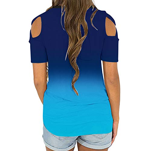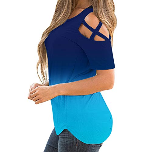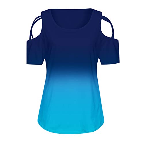 2021 Vrouwen Tie Dye Gradient Zomer Korte Mouw Strappy Koude Schouder T-Shirt Tops Blouses