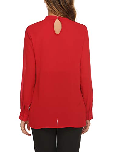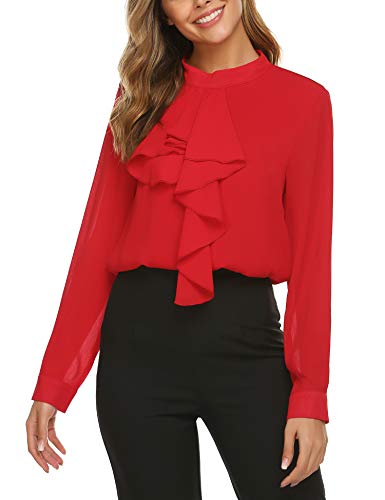 Specification: BEYOVE Elegante zakelijke chiffon blouse voor dames, opstaande kraag, met ruches, lange mouwen, knopen, feestelijke top