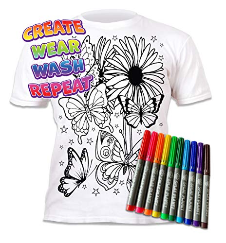 Specification: Splat Planet Kleur-in Vlinder T-shirt met 10 niet-giftige wasbare magische pennen – Kleur-binnen en was uit T-shirt