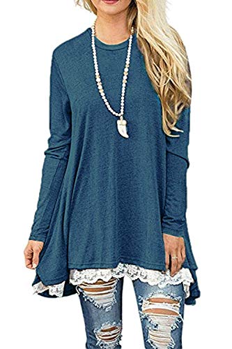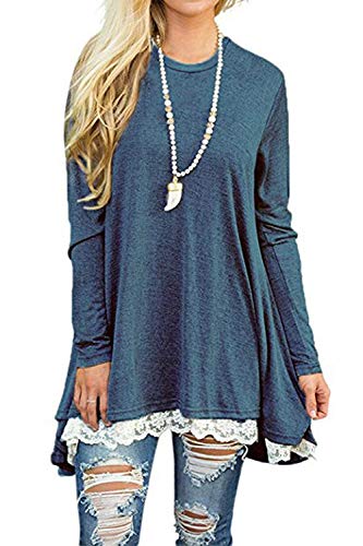 Specification: NICIAS Dames Zijknopen Lange Mouw Casual Ronde Hals Elleboog Gepatcht Sweatshirt Losse T-Shirt Blouses Tuniek Tops