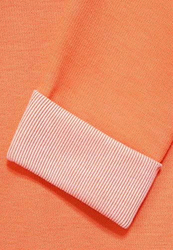 Street One – Modisches Damenshirt mit Double-Face Optik – Wenn es etwas wärmer wird, ist es Zeit für dieses außergewöhnliches Shirt von Street One. Ein farbintensives Unidesign unterstützt die feminine Ausstrahlung dieses Damenshirts von Street One. In locker geschnittener Passform schmeichelt sich das weiche Damenshirt sanft an Ihre Konturen an, ohne beengend zu wirken. Die dekorative Naht auf dem Rücken bringt noch mehr Bewegung und einen individuellen Look in das Oberteil. Der lange, gekrempelte Arm mit überschnittener Schulter und die lockere Passform vereinen sich in diesem Damenshirt , das ebenso feminin wie sportlich wirkt. Der elegante Ausschnitt macht Ihren femininen Auftritt komplett. Der hautsympathisch und angenehm zu tragende Baumwoll Mix besticht mit lockeren Passformen und sorgt ganz nebenher für das komfortable Wohlfühlen in diesem Damenshirt. Materielle Grundlage ist ein hautsympathisch und angenehm zu tragender Baumwoll Mix, das mit seinen pflegeleichten und langlebigen Eigenschaften immer wieder gern getragen wird. Kombiniert mit Hosen oder auch Denimjeans setzt das Shirt einen aktiven Kleidungsstil gekonnt um. Dabei wirken sowohl das farbenfrohe Unidesign als auch die lockeren Passform immer aufmerksamkeitsstark und individuell. Genau richtig für Damen mit einem Hang nach schwungvoller Damenmode für Alltag und Freizeit. Street One – Shirt mit Doubleface-Optik in Strong Mandarine.