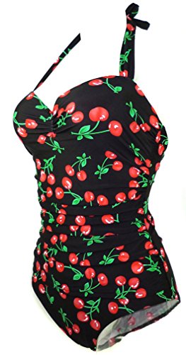 Specification: EUDOLAH Dames badpak Figuurvormende Badmode Nekhouder Retro Vintage Push Up Kersen Cherry Belly Path