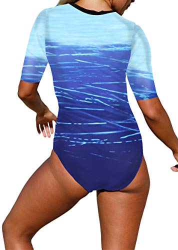 Specification: Ocean Plus Dames Badpak met Ritssluiting Ronde Hals Korte Mouwen Badmode met Hoge Taille Strandkleding