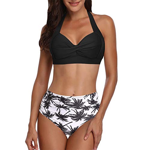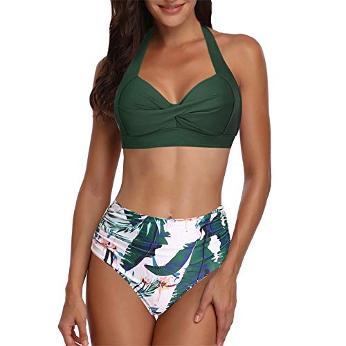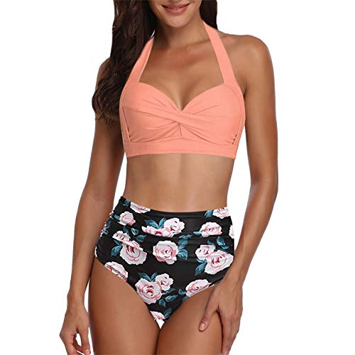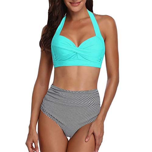 Kenmerken: Vrouwen Badpak Tweedelige Retro Halter Ruches Hoge Taille Bikini